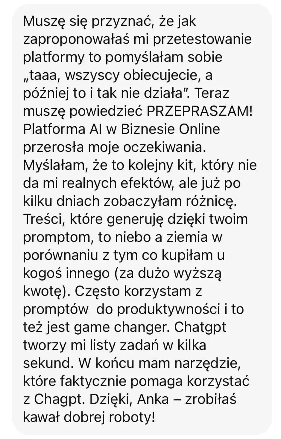 Wszystkie i sprawdzone procesy oraz strategie zamknęłam w Asystentach AI – to stało się fundamentem AI w Biznesie Online.