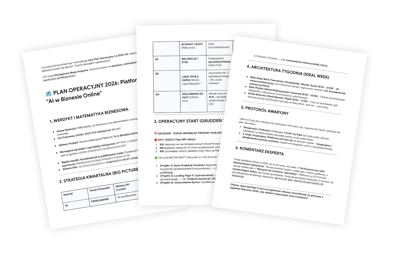 To nie kurs, ani kolejny planer. To praktyczny system, który przeprowadza Cię przez cały proces: od weryfikacji pomysłów, przez plan, aż po ofertę i strategię treści.